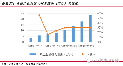 工業(yè)機(jī)器人的大規(guī)模使用,不僅可以助推企業(yè)轉(zhuǎn)型,而且也給智能制造業(yè)帶來巨大的市場(chǎng)需求。從全球來看,2014年工業(yè)機(jī)器人年銷售額約59億美元,銷量為22.5萬(wàn)臺(tái)左右,比2013年增長(zhǎng) 27%。我國(guó)是世界上增長(zhǎng)最快的市場(chǎng),前瞻產(chǎn)業(yè)研究院提供的數(shù)據(jù)顯示, 2015年工業(yè)機(jī)器人銷量高達(dá)66000臺(tái),在2013 年的基礎(chǔ)上增長(zhǎng)了 80%,繼續(xù)保持高速發(fā)展態(tài)勢(shì)。